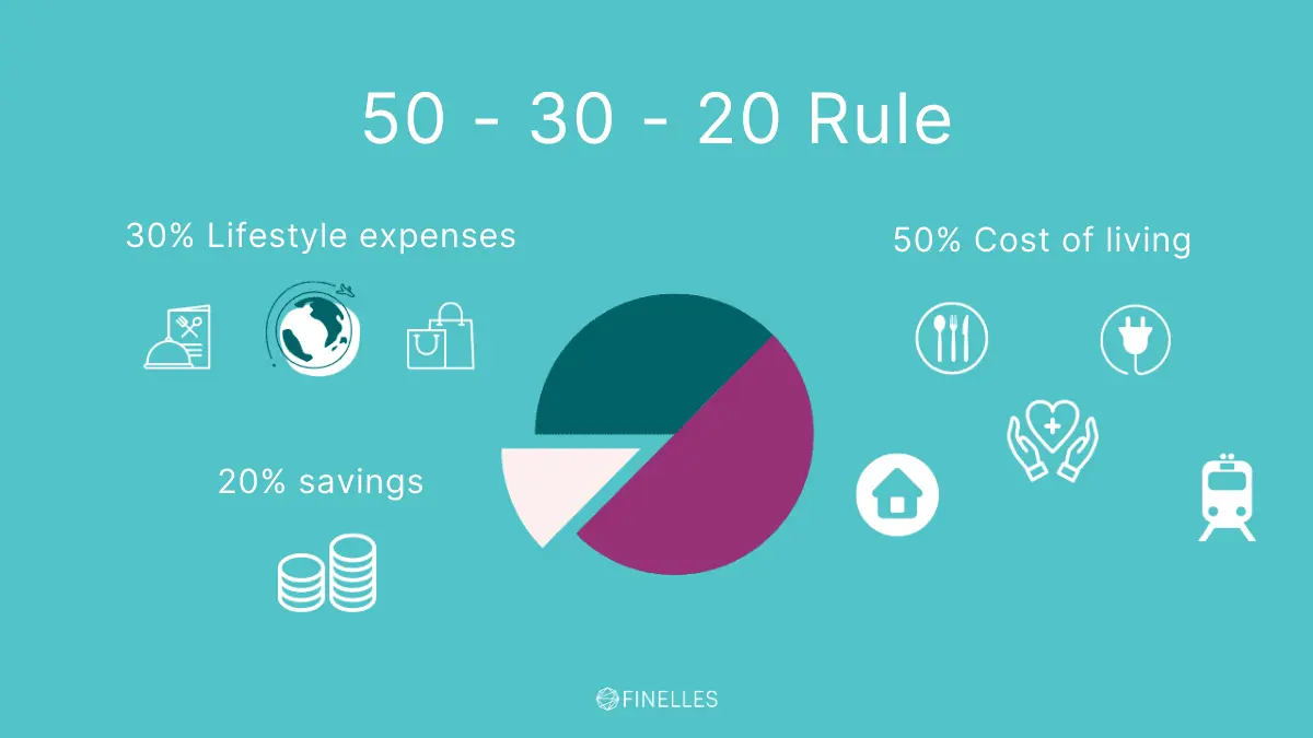 After you have optimised certain expenses, it is important to define a fixed budget for the future that you can stick to. It is best to do this per category that you have defined. One rule that has proven to be effective is the 50-30-20 rule. This was created by Elizabeth Warren, a US senator. It says that about 50% of your net salary should be used for living expenses such as rent, food, insurance or transport. 30% of your net salary goes to fun expenses such as going out, holidays or eating out. The remaining 20% is then used for savings. For comparison: In Switzerland, the average savings rate is about 19% (OECD). So this should be possible.