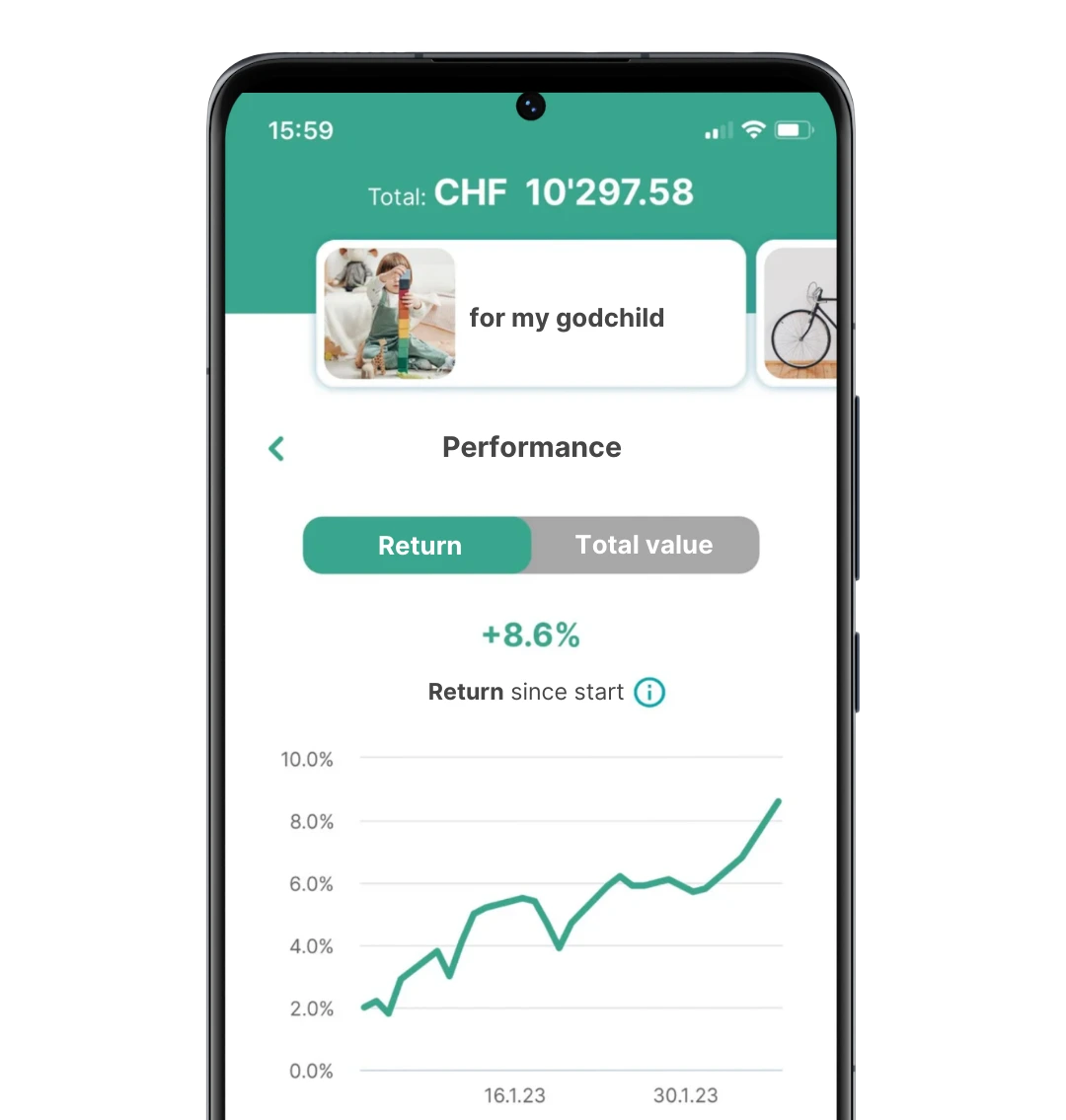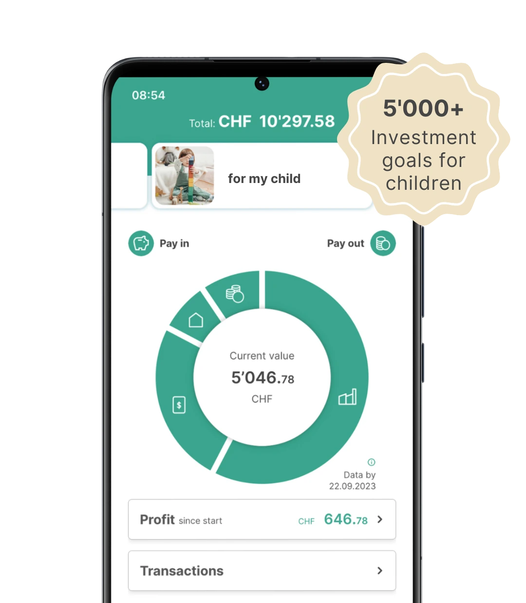Would you like to save a nest egg for your child or godchild/grandchild so that they can start their adult life without financial worries later on? Or would you like to pay a large sum for a car voucher, your first flat or a language course on your 18th birthday? With our low-cost ETFsApp investing for children is much more rewarding than saving in a bank account.