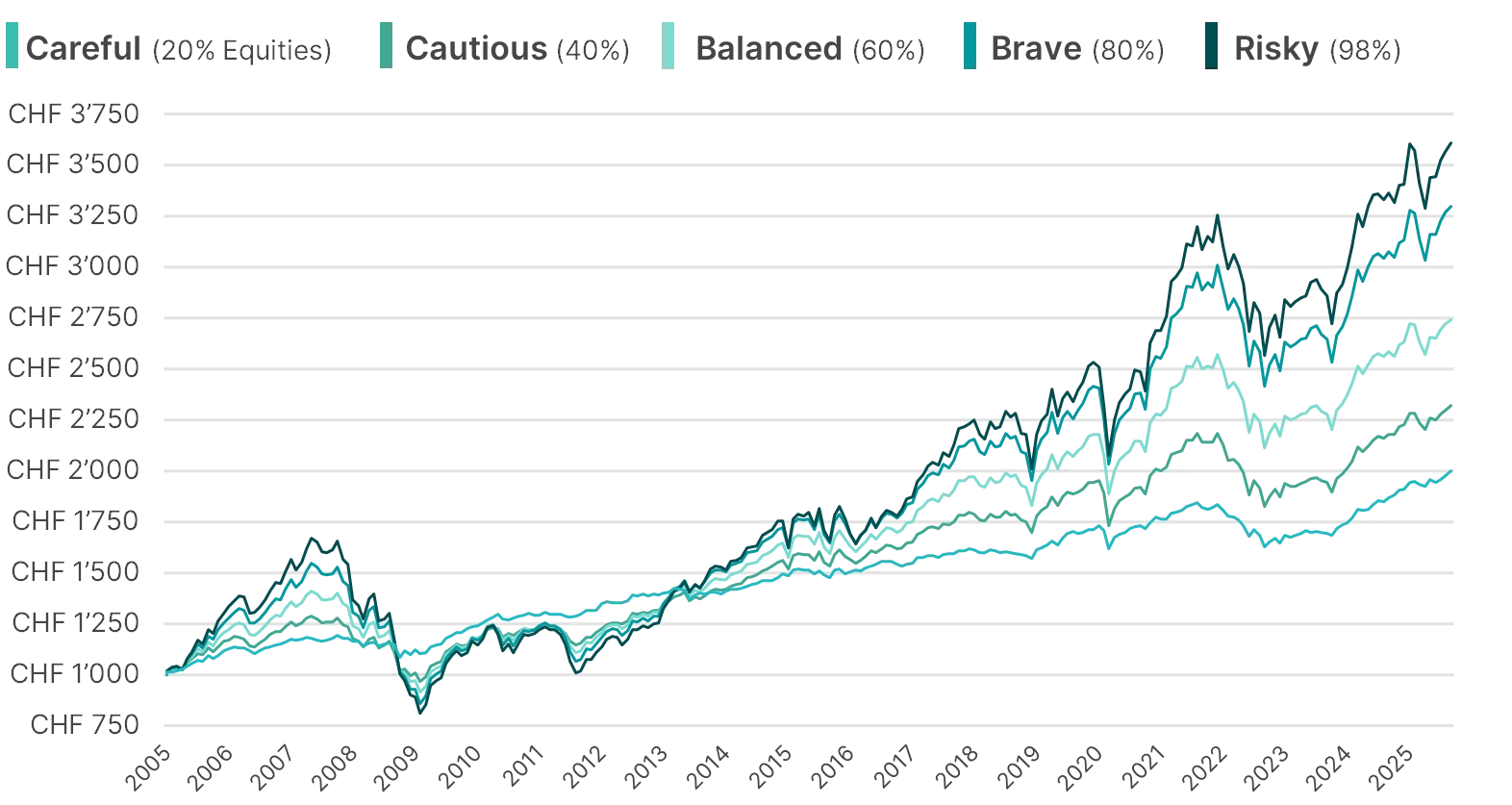 From a jungle of over 1’500 ETFs, we have selected the best ETFs for you and put together five ready-made investment solutions.
