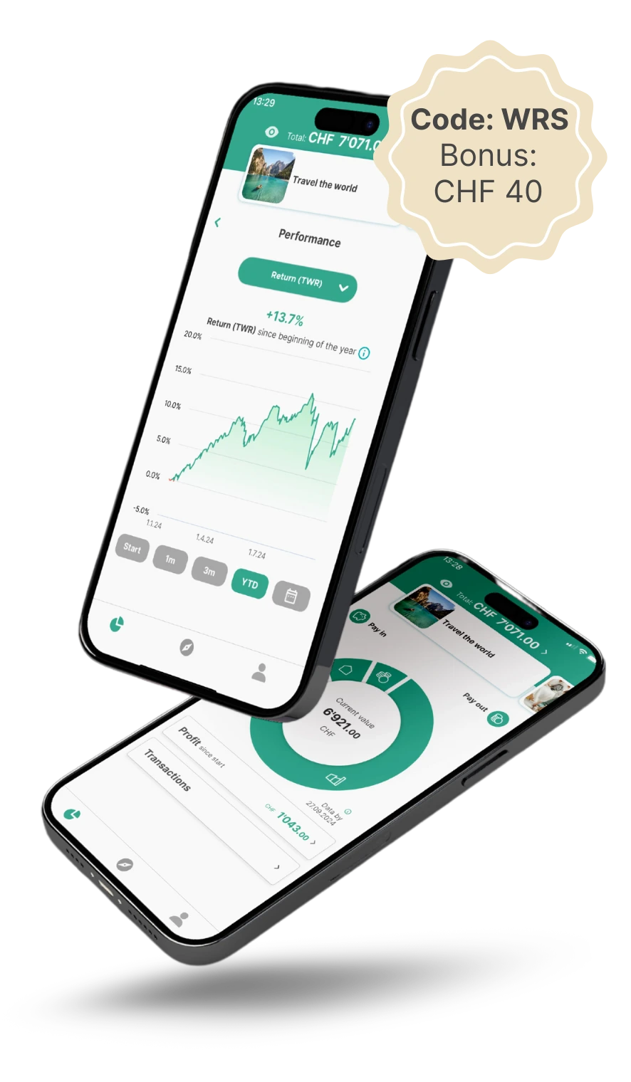 What’s more, you pay no transaction fees (brokerage fees) and invest CHF 2’000 free of charge for life. That way you can try out the app and see for yourself.