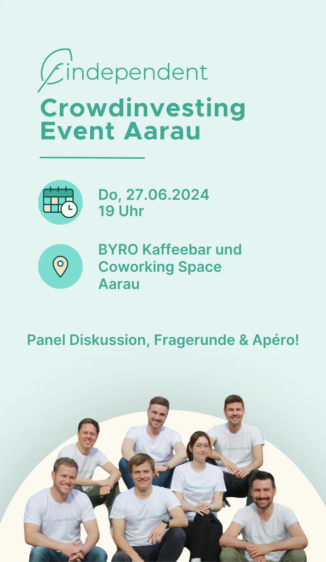 Du bist interessiert Miteigentümer:in bei findependent zu werden, hast aber noch ein paar Fragen zu findependent oder dem Crowdinvesting? Dann komm zu unserem Event in Aarau, wo wir die wichtigsten Aspekte des Crowdinvesting adressieren und deine Fragen beantworten.