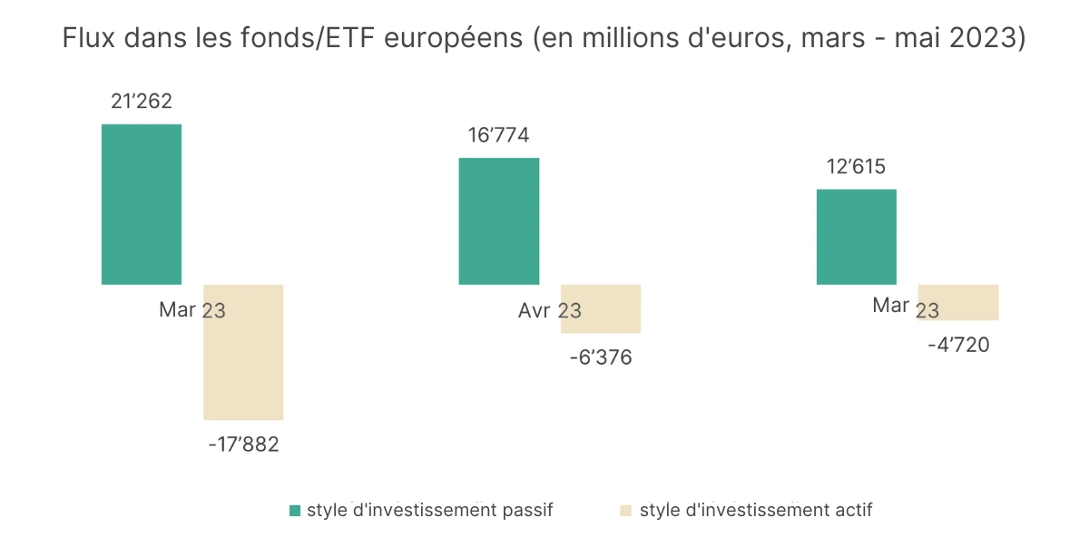 L’investissement passif avec des ETF bon marché jouit en effet d’une très grande popularité. Les chiffres des flux publiés régulièrement par les grands fournisseurs de données en témoignent.