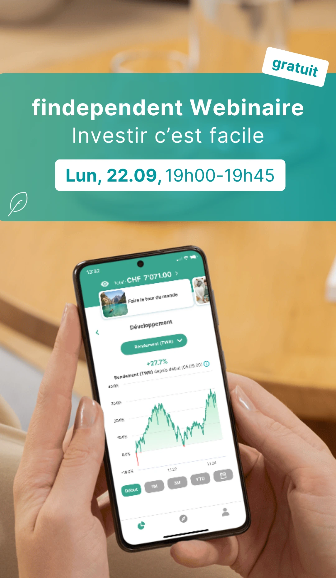 Dans notre webinaire, nous t’expliquerons ce qu’il faut savoir sur l’investissement de manière simple et compréhensible, en allant à l’essentiel. Tu verras : pour investir avec succès, tu n’as pas besoin de suivre constamment les marchés financiers ni de prendre des risques excessifs. Tu n’as pas non plus besoin d’avoir beaucoup de connaissances préalables ni d’une fortune pour te lancer.