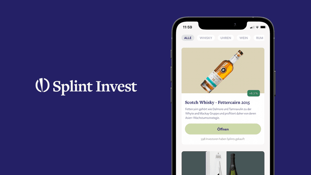 Splint Invest ist eine Plattform für alternative Anlagen. Dabei kannst du in Anteile (sogenannte Splints) von Sachwerten investieren. Beispiele sind Luxusgüter wie Whiskyfässer oder Uhren, Rohstoffe und Private Equity.